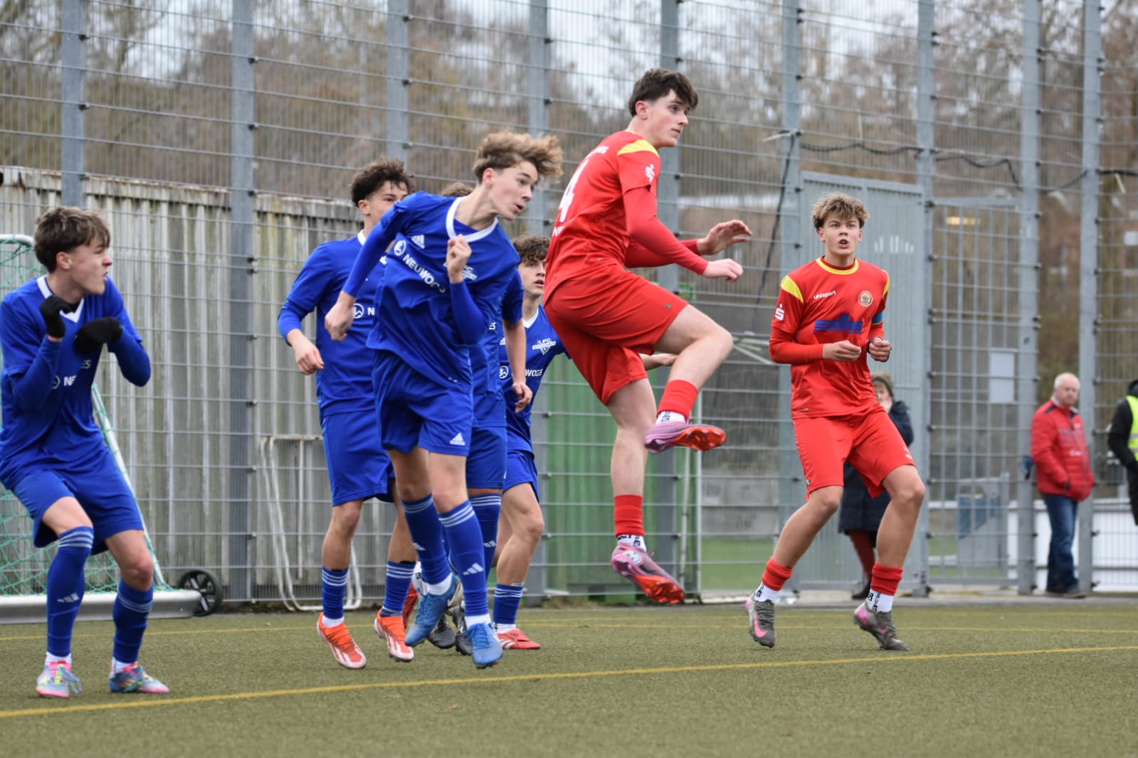 Der Pausentee wurde dann aus neuen Trink-Flaschen verabreicht. Die U17 bedankt sich mit einem „Prost“ bei Familie Knaack für das „Sponsoring“. Zaubertrank war indes nicht enthalten, sodass sich die Jungbullen auch im 2ten Durchgang ähnlich schwer taten, ihre Spiel-Idee gänzlich umzusetzen. Dennoch entwickelte man zwischenzeitlich den Ansatz einer Drangphase und kam zu einigen Möglichkeiten. Der sehr fleißige Mahmudi hatte direkt einen 100er auf dem Fuß. Nachdem eine Barati Flanke vom Gäste Schnapper unterlaufen wurde, musste Mahmudi die Kugel nur noch über die Linie bugsieren. In dem Moment als der Ball im 5 Meter Raum aufsetzte, kam der Angreifer jedoch unter die Kugel und setzte sie erneut drüber. Kurz darauf tuschierte ein Wolgast Freistoß die Mauer und senkte sich brandgefährlich hinter den Schlussmann. Allerdings nur auf das Tor. Seinen nächsten Freistoß setzte Aktivposten Wolgast erneut an den Pfosten und markierte damit den 3ten Schweriner Alutreffer an diesem Tag. Dann war der Ball aber doch noch 2 mal im Tor. Allerdings jeweils aus Abseitspositionen. Mit fortwährendem Zeitschwund wurden die Hausherren zunehmend ungeduldig und spielten die Angriffe dann nicht mehr zu Ende. Heraus sprangen unzählige, zumeist harmlose Abschlüsse ohne wirkliche Gefahr. Die Gäste lauerten über weite Strecken des 2ten