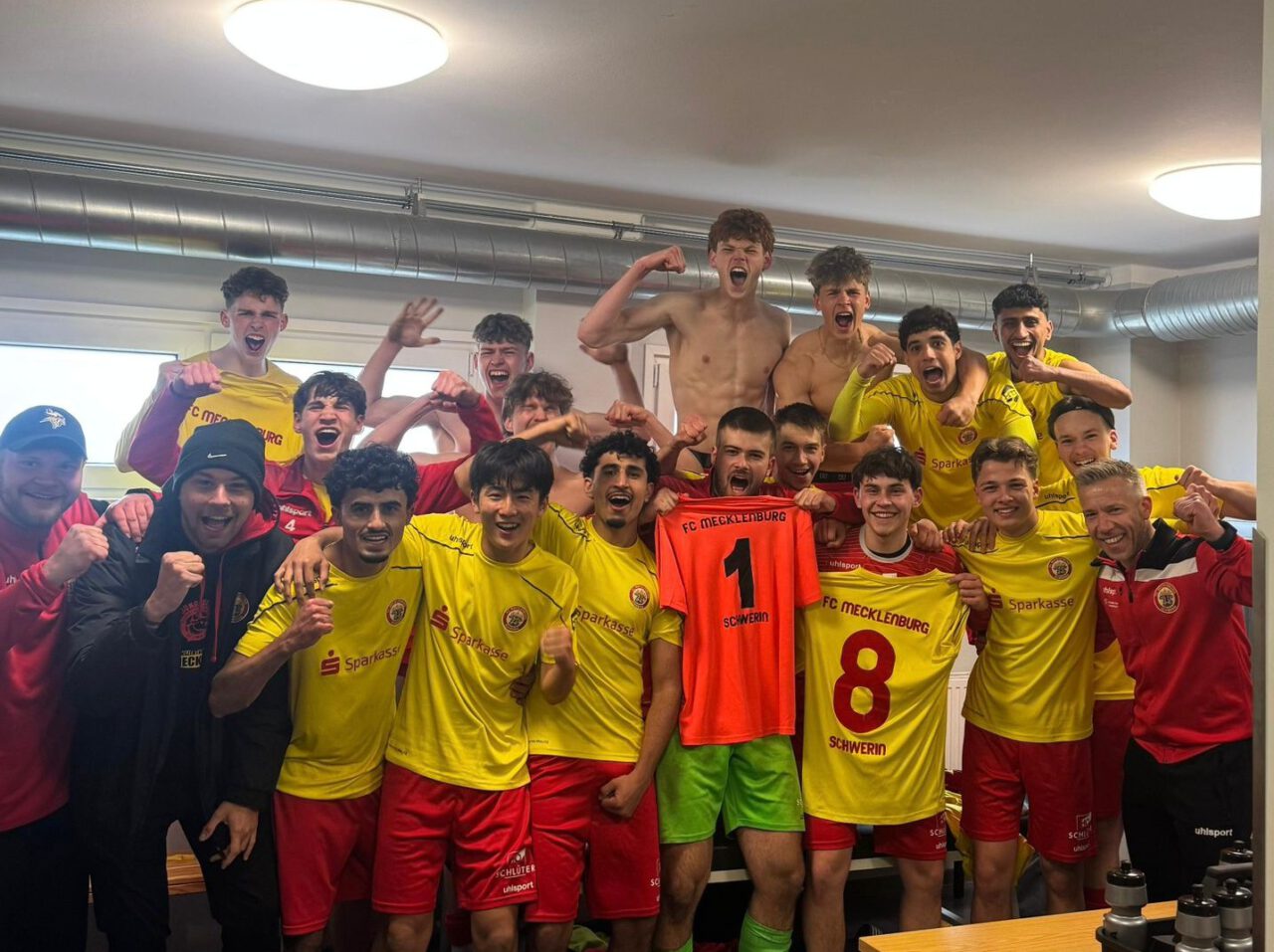 Der 3. Regionalliga Rückrunden Spieltag führte unsere U19 nach Neubrandenburg zum ewig jungen MV Derby zwischen dem FCN 04 und dem FCM. Die Schweriner Jungs sollten dieses ganz klar mit 8:1 gewinnen und sichern sich damit 3 ganz wichtige Punkte im Kampf um den Klassenerhalt. Die Partie war keine 30sec alt, da klingelte es das erste Mal im Heim Gehäuse, Ballgewinn, 2 schnelle Pässe nach vorne und Kawanishi besorgte das 1:0. Danach der Gast weiterhin mit viel Druck und reichlich Torabschluss Möglichkeiten. Doch statt des 2:0 klingelte es nach einer Ecke, quasi aus dem Nichts, im Schweriner Tor, nach dem man recht knabenhaft verteidigte und somit den Ausgleich kassieren durfte (19.min). Allerdings schüttelten die Landeshauptstädter sich nur kurz und in der 25.min besorgte Holdorf die erneute Führung, nach feinem Steckpass vollendete er eiskalt vor dem Tor zum 2:1. Und nur 3 min später erleuchtete das 3:1 auf der Anzeigetafel, nachdem Szulczyk einen toll vortragen Angriff am Ende nur noch über die Torlinie bugsieren musste. Das Ergebnis hätte in der Folge nach oben gehen können, doch mangelnde Chancenverwertung ließ die Schützlinge mit der Schweriner 2 Tore Führung in die Pause gehen.